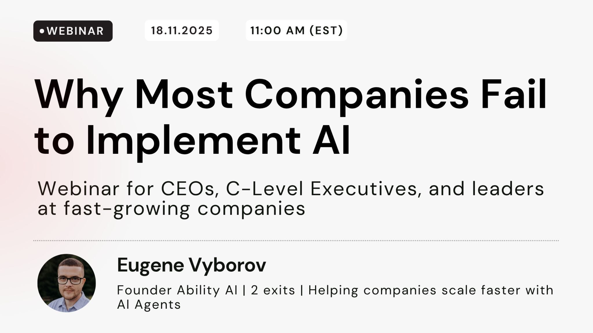 On November 18th, at 11 am EST, I’ll be diving deeper into this in our upcoming webinar, Why Most Companies Fail to Implement AI — and how to lead through it differently.